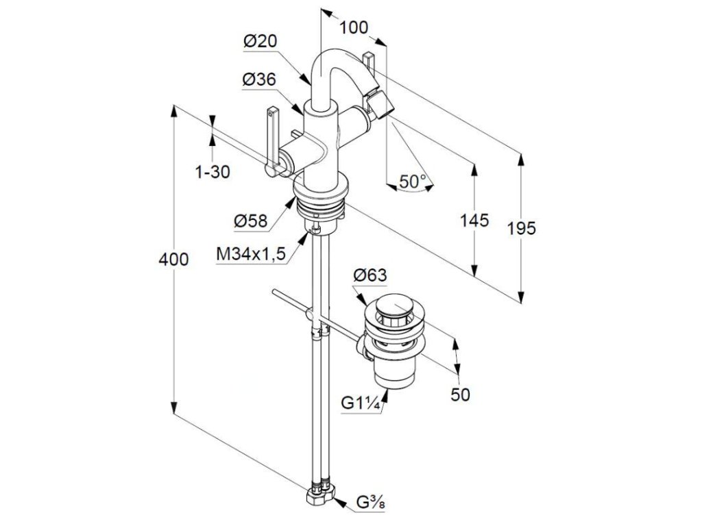 - flexibilní přípojky G 3/8