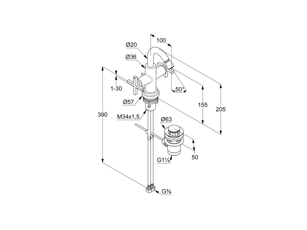- flexibilní přípojky G 3/8