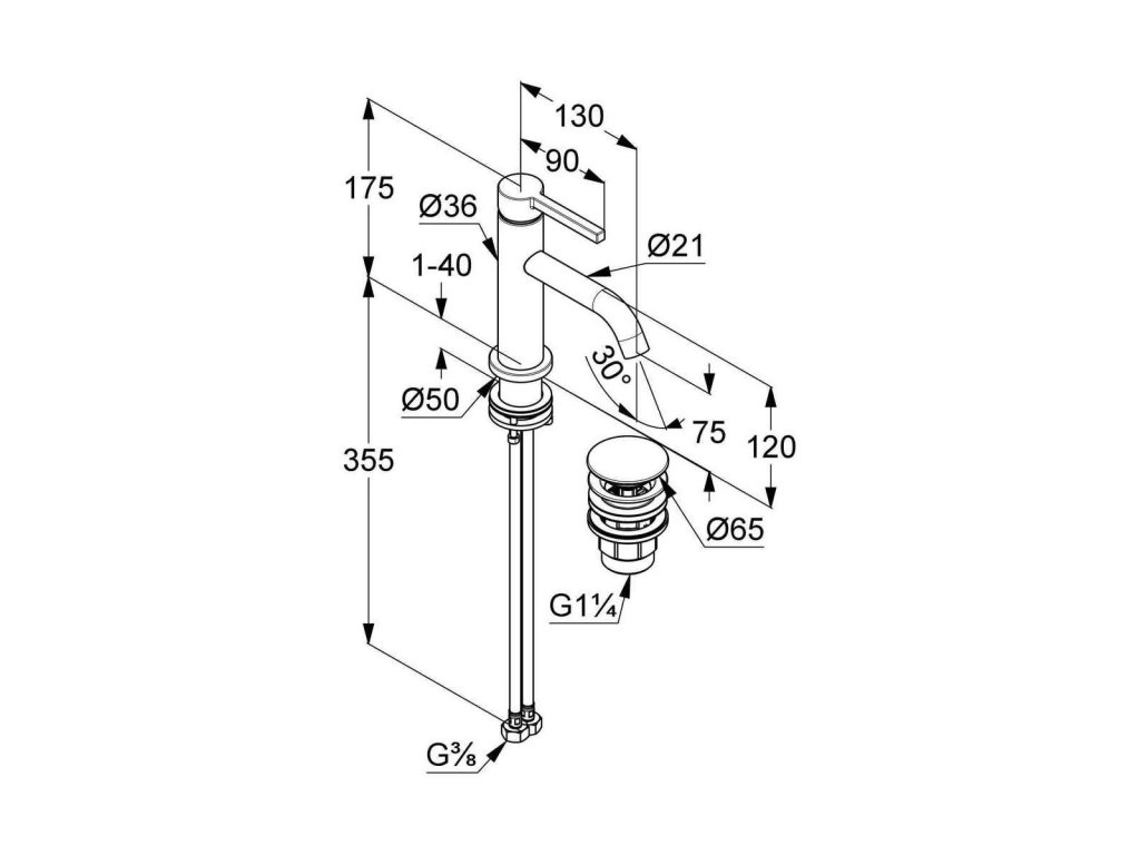 Umyvadlová baterie Pura, s výpustí