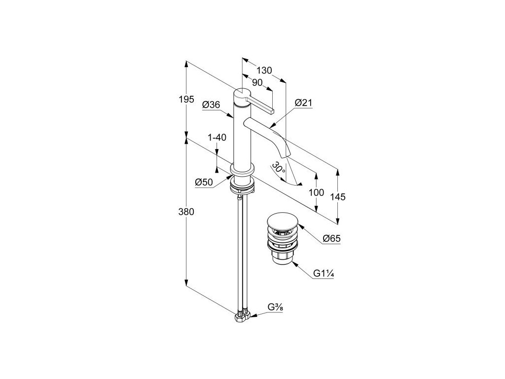 Umyvadlová baterie Pura, s výpustí