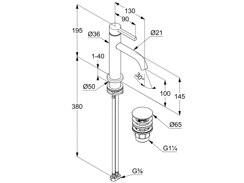 Umyvadlová baterie Pura, s výpustí
