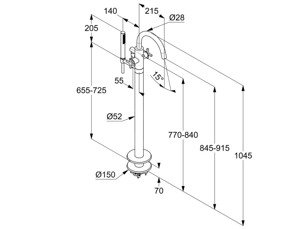 - podlahová montáž pro volně stojící vany
