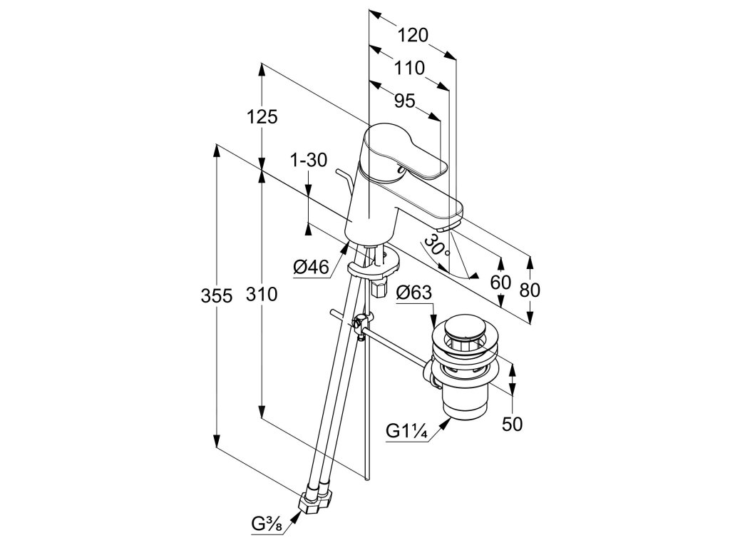 - flexibilní přípojky G 3/8