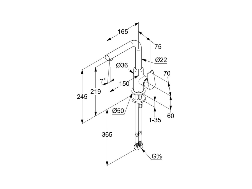 Uvedení do provozu zajistí flexibilní přípojky G 3/8. Umyvadlovou baterii Kludi Pure&Style dodáváme bez odpadové soupravy.