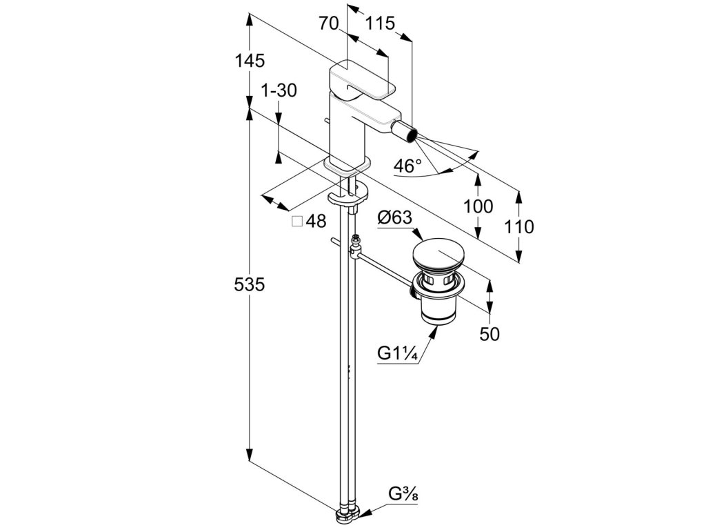 Stojánková bidetová baterie s výpustí