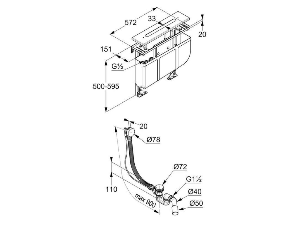 KLUDI Rotexa set odtokové soupravy a tělesa na okraj vany, pro 4-otvorovou baterii, 7878205-00