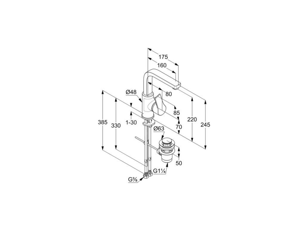 Páková umyvadlová baterie s výpustí