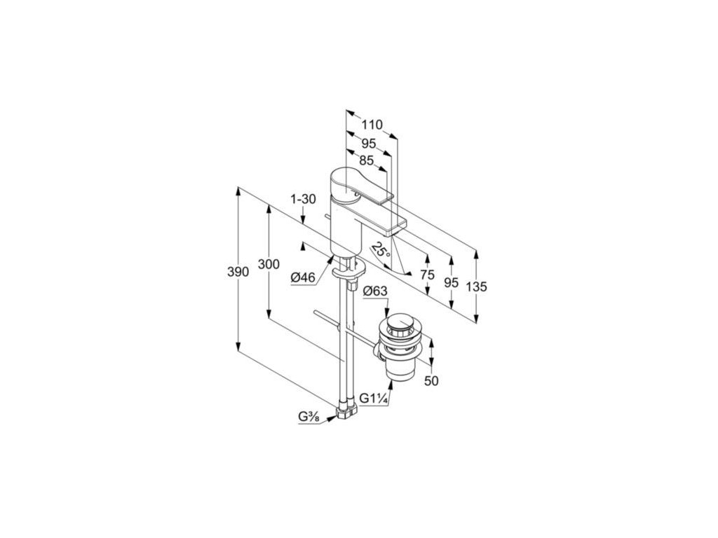 KLUDI ZENTA SL umyvadlová baterie s výpustí, chrom, 482630565
