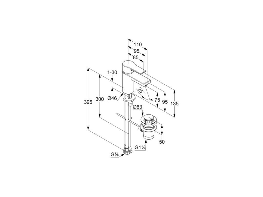 Páková umyvadlová baterie s výpustí