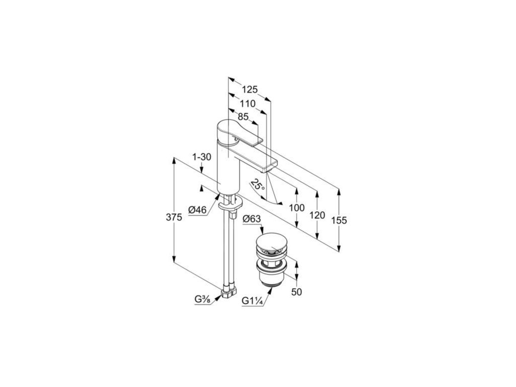 Páková umyvadlová baterie s výpustí