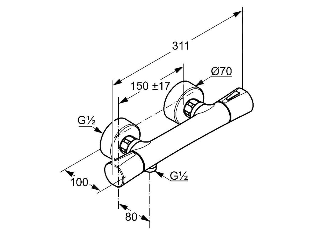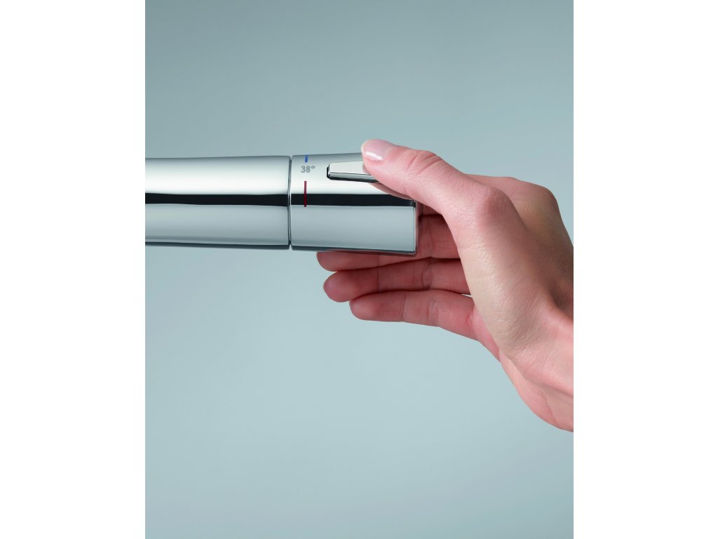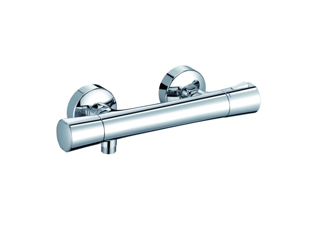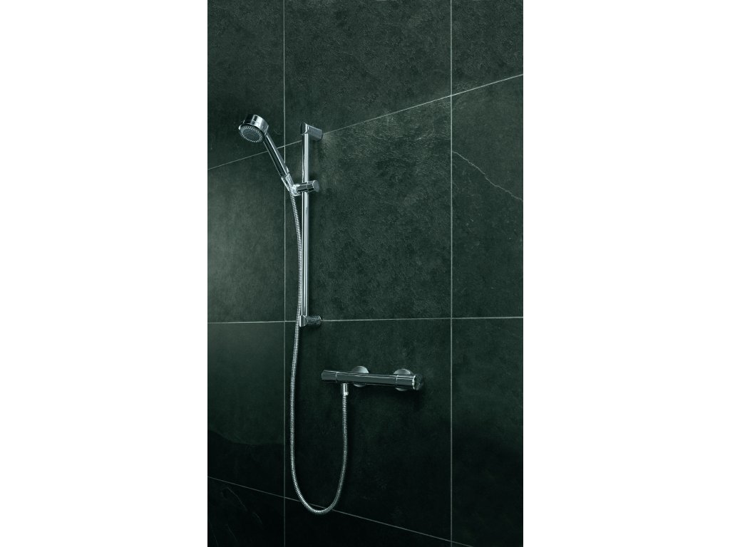 Termostatická sprchová baterie s nástěnnou instalací zaujme nejen působivým designem, ale také svým vynikajícím výkonem. Má příjemné a intuitivní ovládání teploty s bezpečnostní zarážkou na 38 °C (technologie HotStop). Je vybavena sítky na zachycení nečistot a zabezpečena proti zpětnému nasátí vody. Nechybí ani uzavírací ventil.