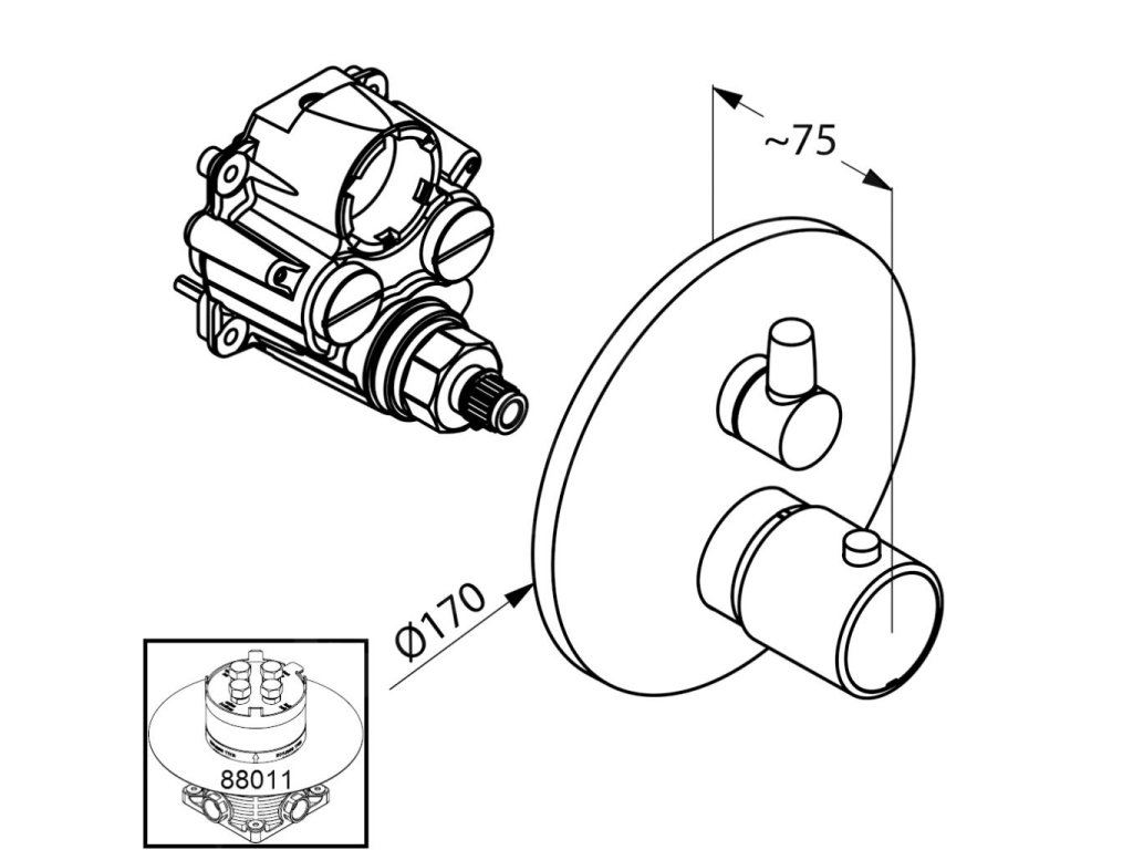 Termostatická vanová baterie Zenta, bez tělesa
