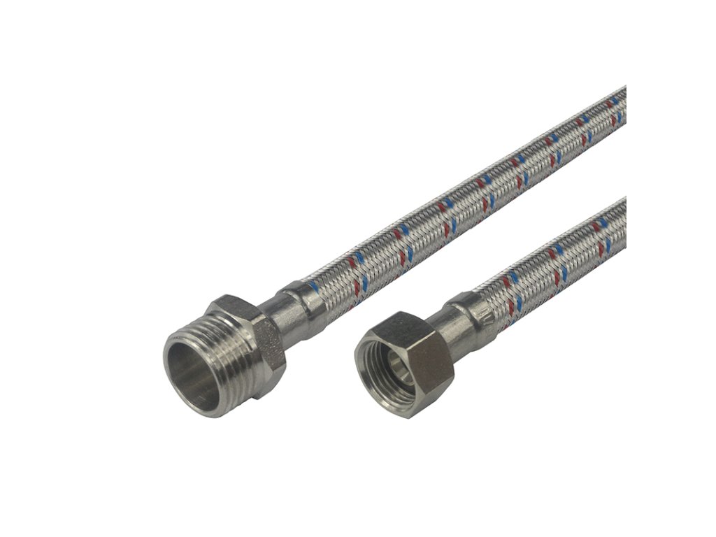Nerezová připojovací hadice k přívodu teplé a studené vody 300mm s maximálním tlakem do 10 bar a provozní teplotou max. 95 °C.