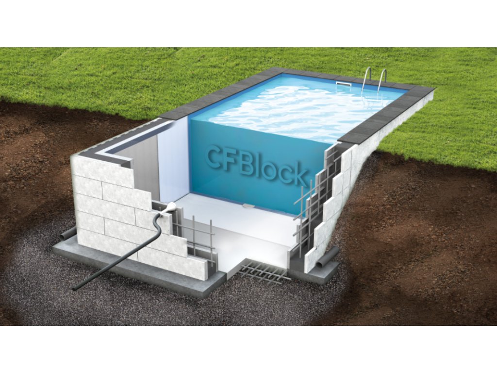 Kompletní bazénový set CF Block 6 x 3 x 1,5 m. Představení bazénů CF Block Bazény CF Block jsou bazény nové generace určené primárně pro zákazníky, kteří si chtějí bazén postavit sami a hledají jednoduché ale kvalitní řešení. Bazény CF Block jsou dodávány v kompletních sadách, které obsahují veškeré potřebné příslušenství pro stavbu a provoz bazénu a novému majiteli tak odpadá nutnost shánět každé příslušenství zvlášť. Součástí dodávky je podrobný návod na stavbu bazénu a instalaci příslušenství. Stěny bazénu CF Block jsou tvořeny inovativními polystyrenovými tvárnicemi, vnitřní část bazénu pak zesílenou bazénovou fólií. Kromě tělesa bazénu set obsahuje skimmer, vratné trysky a fitinky pro filtrační okruh. Součástí setu je kvalitní písková filtrace vyrobená v Německu a 4stuňové bazénové schůdky vyrobené z nerezové oceli. Bazény CF Block se nabízejí v nejoblíbenějších rozměrech 6 x 3 m, 7 x 3,5 m a 8 x 4 m. Všechny bazény mají hloubku 1,5 m. Vybírat můžete ze 2 verzí setů: základní a De Luxe. Obsah setů je stejný, vždy se skládá z tělesa bazénu a veškerého příslušenství potřebného k postavení, zprovoznění a provozu bazénu. V setu De Luxe jsou použity prémiovější komponenty, konkrétně pevnější tvárnice CF Block, silnější bazénová fólie, u které můžete vybírat ze 3 barev (modrá, písková, šedá), prémiová písková filtrace, nebo designový skimmer. Hlavní rozdíl mezi sety:Základní set De Luxe setTvárnice CF Block P25 Tvárnice CF Block P30Bazénová fólie 0,6 mm, modrá Bazénová fólie 0,8 mm, modrá, šedá nebo pískováSkimmer Skimmer PremiumMožnost použití salinátoru NE Možnost použití salinátoru ANOSystém bazénových tvárnic CF Block Jedná se o inovativní řešení polystyrenových tvárnic, které se používají pro stavbu stěn bazénu ze ztraceného bednění. Polystyrenové tvárnice jsou pevné bloky o délce 1,25 metr. Uvnitř jsou duté a z horní a spodní strany mají profil, aby do sebe precizně zapadly (lze přirovnat ke kostkám lega). Tvárnice se vylévají betonem, který se vyztuží stavební ocelí. Polystyrenové tvárnice jsou typu PS 25 (25 kg materiálu na 1m3), mají bílou barvu a rozměr 1,25 x 0,375 x 0,25 m. Tvárnice CF Block jsou vyrobeny v Rakousku společností CF Group. Bazénová fólie Kvalitní 3vrstvá bazénová fólie vyrobena ve vlastní továrně CF Group v Německu (největší výrobce bazénových folií v Evropě). Fólie je vysokofrekvenčně svařená, což zajišťuje kvalitu svaření a dlouhodobou těsnost spojů. Fólie má tloušťku 0,6 mm a je v modré barvě. Fólie odolává bazénové chemii nebo ošetření vody salinací; je odolná vůči UV záření. Fólie je opatřena zámkovým systémem na její uchycení na bazén. Na horní obvod bazénu se nainstaluje speciální lišta (součástí dodávky), do které se pak fólie pomocí zámkového systému uchytí. Kompletní sady Bazény CF Block dodáváme vždy v kompletních setech jejichž součástí je kromě tělesa bazénu i příslušenství potřebné pro stavbu, zprovoznění i provoz bazénu. Součástí dodávky je podrobný návod na stavbu bazénu a instalaci příslušenství. Kompletní bazénový set CF Block 6 x 3 x 1,5 m obsahuje:18800 CF Block tvárnice P25 (125 x 37,5 x 25 cm) 61 ks01886 Koncovka k CF Block tvárnicím 20 ks75016 Bazénová fólie 0,6 mm modrá 1 ks01860 Lišta na zavěšení fólie (hliníkový profil) 18 m01866 Hmoždinka se šrouby 40 x 6 54 ks02008 Písková filtrace 8 m3 1 ks02504 Filtrační písek 0,7-1,2 mm 2 ks08206 Nerezové schůdky 4stupně úzké 1 ks05224 Skimmer se širokým hrdlem 1 ks05231 Stěnová průchodka pro vratnou trysku 2 ks05234 Vratná tryska 2 ks07911 Geotextililní podložka 31 m x 150 cm 1 ks01868 Lepidlo ve spreji Kwad Styro Power 550ml 1 ks14002 PVC trubka ø 50 mm 21 m14006 Objímka ø 50 mm 4 ks14008 Koleno 90° ø 50 mm 10 ks14010 Koleno - redukce SD 2 ks14012 Koleno 45° ø 50 mm 2 ks14014 T-kus ø 50 mm 1 ks14018 Šroubení ø 50 mm - 1 1/2" 2 ks14020 Kulový ventil ø 50 mm 2 ks14028 Přechodka 2" AG 1 ks14063 PVC lepidlo 500g - Profec 1 ks14072 PVC čistič 125ml - Cepex 1 ks14226 Teflonová páska 12m 4 ksCelý bazénový set je dodán na Vaši adresu na 3-5 paletách (dle velikosti bazénu), kde naleznete veškeré výše uvedené příslušenství.Doplňkové parametry