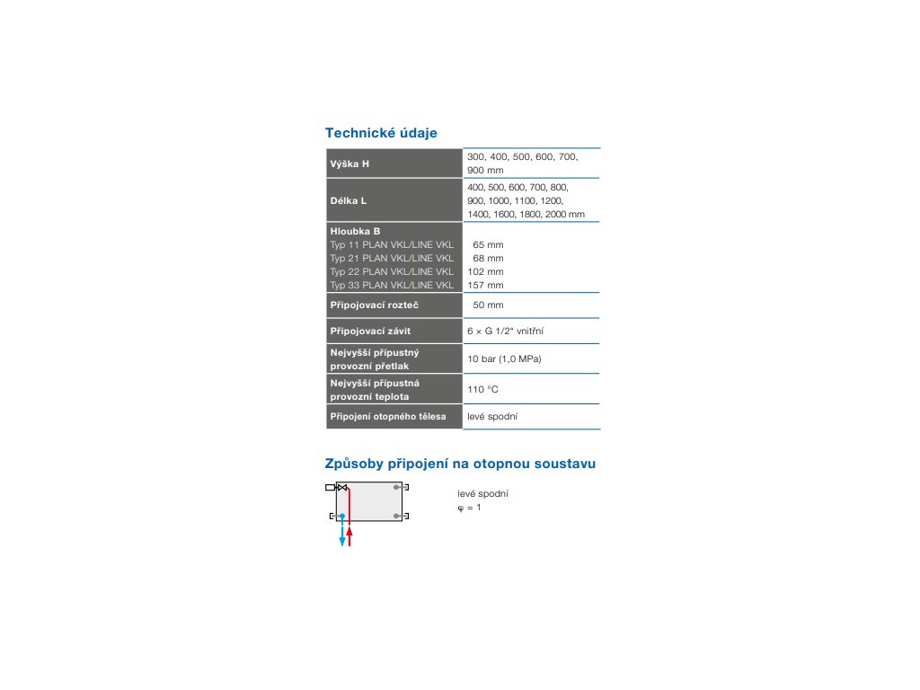 KORADO RADIK PLAN VKL deskový radiátor 21-600/800, spodní levé připojení, white RAL9016, 21060080-E0P0010