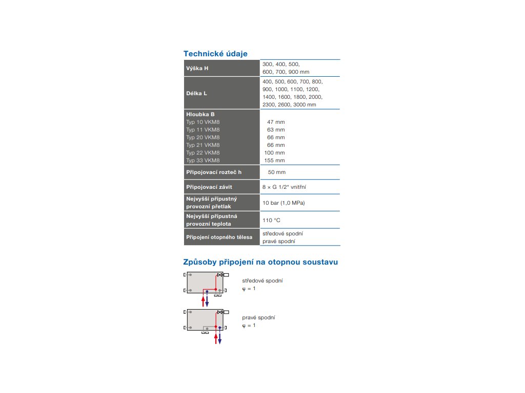 - Typ připojení radiátoru: spodní pravé/středové
