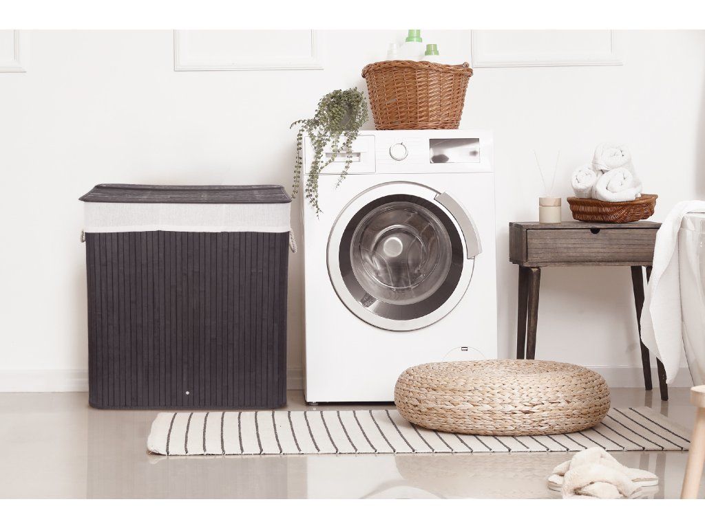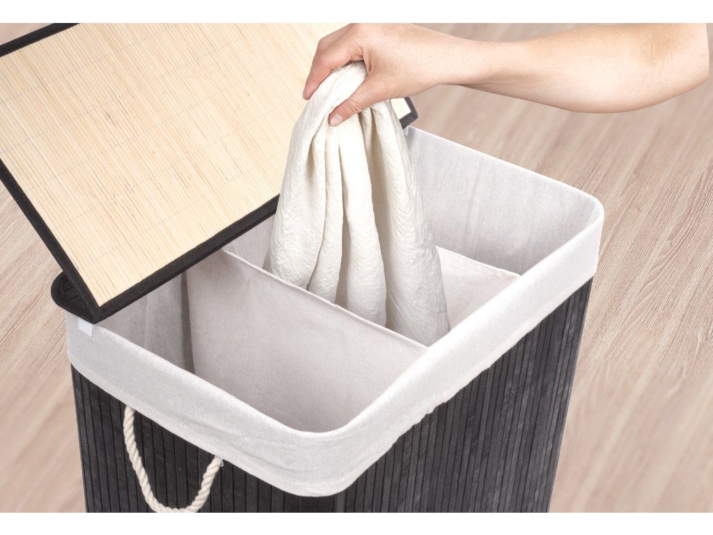 Koš na prádlo G21 150 l s rozdělovači, bambusový černý s bílým košem, 63555172