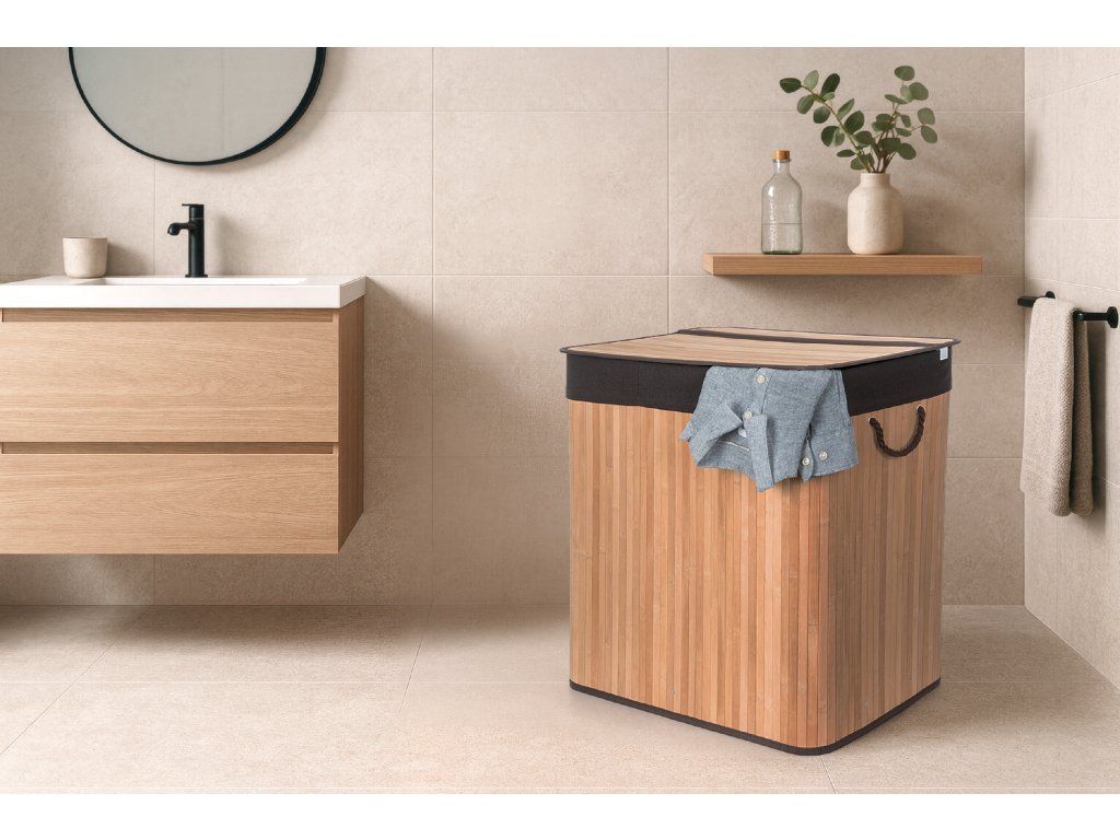 Bambus je překvapivě lehký, takže koš můžete snadno přenášet. Zároveň je ale dostatečně pevný, takže unese i těžkou zátěž, když je naplněn prádlem. Jednou z výborných vlastností bambusového dřeva je navíc jeho velká odolnost vůči vlhkosti. Pokud tedy hledáte prádelní koš, který nepodlehne vlhkému prostředí koupelny, je pro vás bambusový koš na špinavé prádlo s objemem 3 x 50 l jasnou volbou. Jeho další předností je přirozená odolnost vůči bakteriím a plísním, což je u určení koše na špinavé prádlo velmi výhodné.