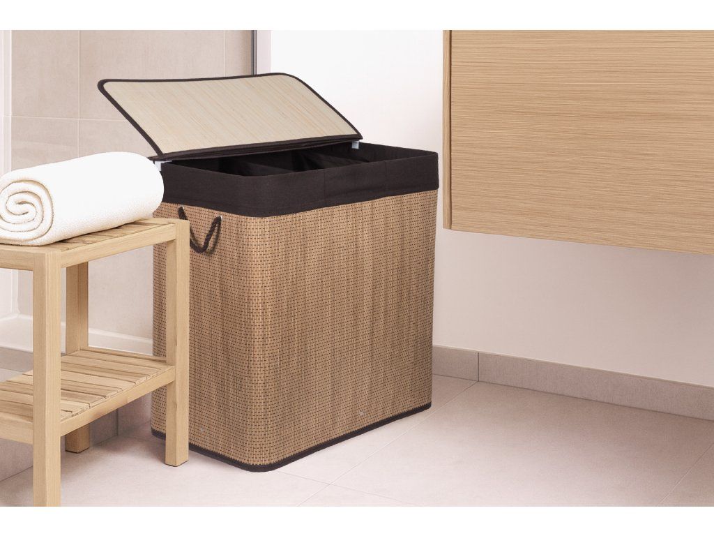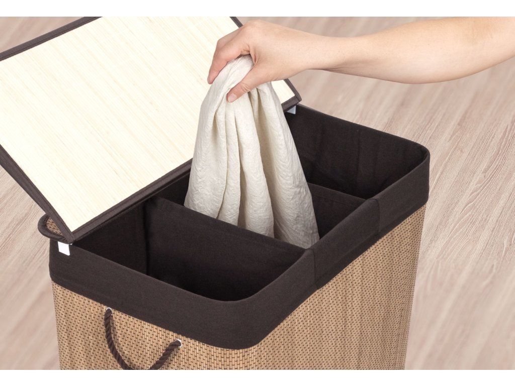 Koš na prádlo G21 150 l s rozdělovači, bambusový s hnědým košem, 63555174