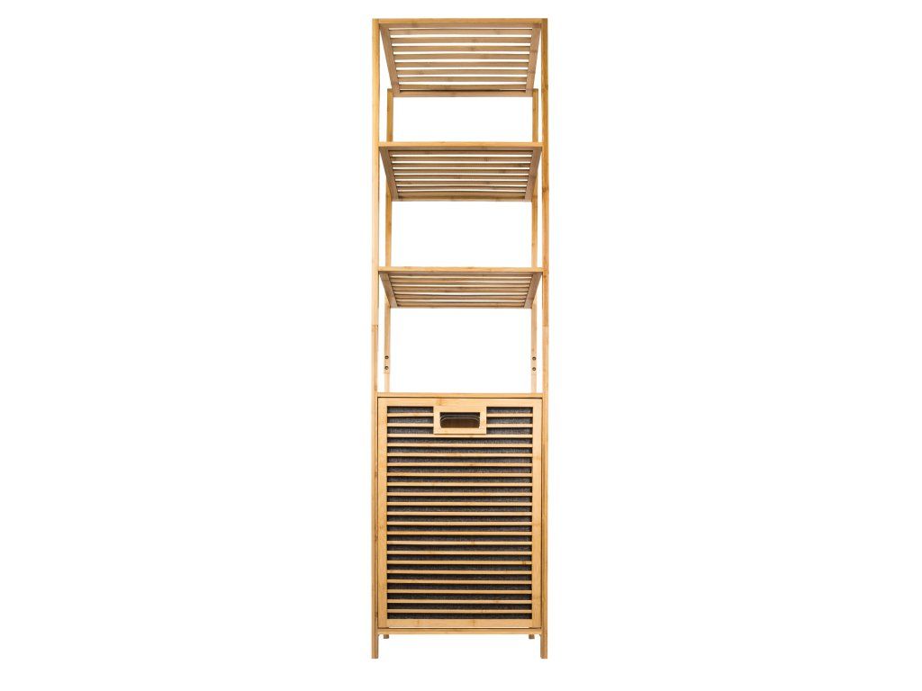 Bambusový koupelnový regál s košem na prádlo dodává interiéru příjemný přírodní dojem. Jeho jemné a teplé barvy mohou oživit a doplnit jakýkoliv prostor bez ohledu na jeho styl – skvěle ladí s rustikálním i moderním nebo minimalistickým interiérem, přizpůsobí se stylu vašeho domova.