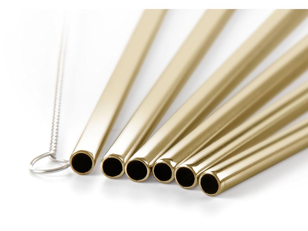Kovová brčka G21 BeEco Party 6 ks zlatá, zahnutá + kartáček na čištění, 6352107