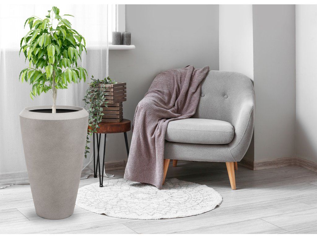 Květináč je vyrobený z kvalitního 0,6 cm silného plastového materiálu s UV filtrem, který vás nelimituje ani co se týče umístění, ani užívání. Květináč je lehký a zároveň výjimečně odolný vůči povětrnostním vlivům. Nemusíte uklízet květiny pod střechu při každé letní spršce ani při silném větru. Naopak vám letní déšť pomůže s údržbou. Květináč můžete na zahradě nechat i v zimě – je odolný vůči mrazu až do -35 °C. Stěny květináče stačí při znečištění opláchnout vodou a je zase jako nový.