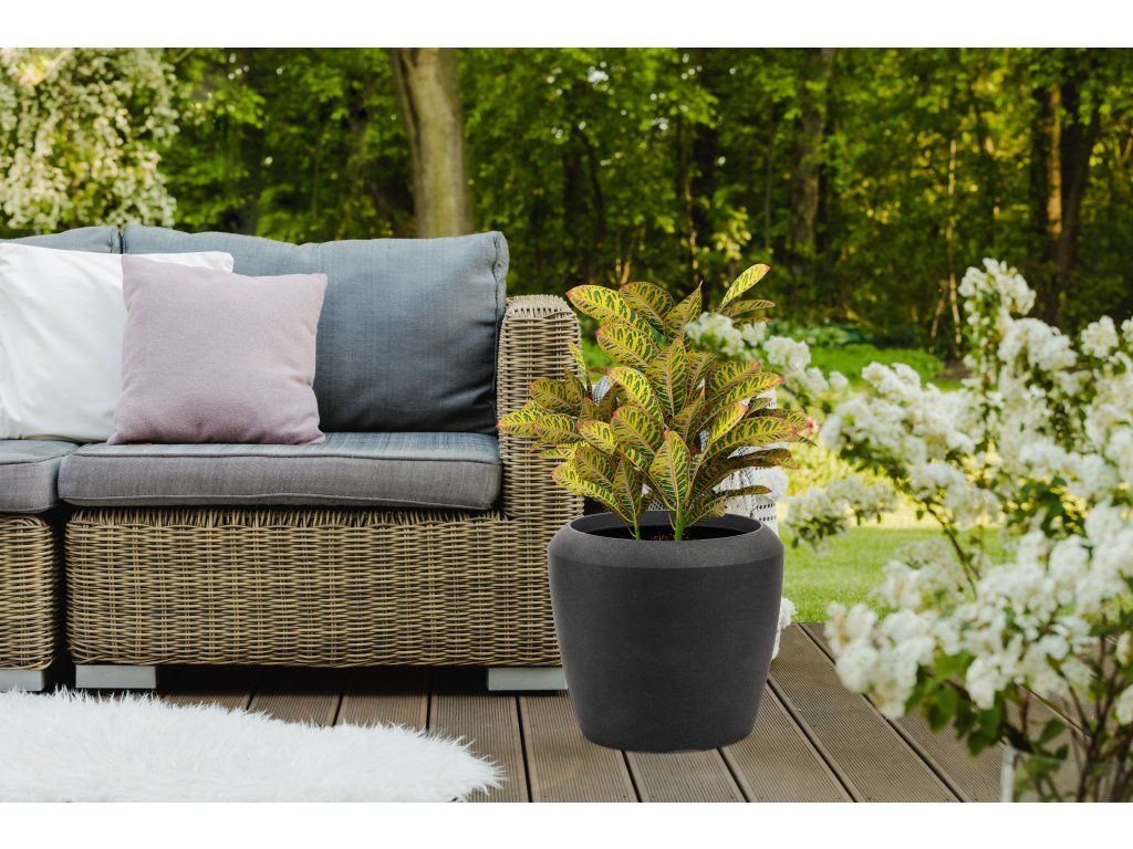 Květináč je vyrobený z kvalitního 0,6 cm silného plastového materiálu s UV filtrem, který vás nelimituje ani co se týče umístění, ani užívání. Květináč je lehký a zároveň výjimečně odolný vůči povětrnostním vlivům. Nemusíte uklízet květiny pod střechu při každé letní spršce ani při silném větru. Naopak vám letní déšť pomůže s údržbou. Květináč můžete na zahradě nechat i v zimě – je odolný vůči mrazu až do -35 °C. Stěny květináče stačí při znečištění opláchnout vodou a je zase jako nový.