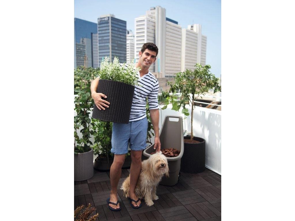 Květináč Cylinder L grafitový značky Keter připomíná svým designem přírodní ratanovou vazbu. Skvěle tak doplní jak moderní, tak i tradiční look okolí. Květiny v něm přirozeně vyniknou.
