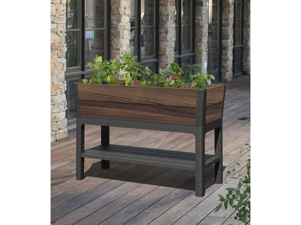 Keter Deco Elevated je vyrobený z odolného plastu s povrchovou strukturou imitující dřevo, která skvěle ladí s exteriérem. Konstrukce je stabilní a unese až 110 kg, takže bez problému pojme i větší množství substrátu. Zavlažovací systém udržuje optimální vlhkost půdy, čímž ulehčuje péči o rostliny. Díky zvýšenému tvaru koryta nebudete muset při práci klečet ani se ohýbat. Spodní polici využijete pro odložení zahradního náčiní nebo květináčů.