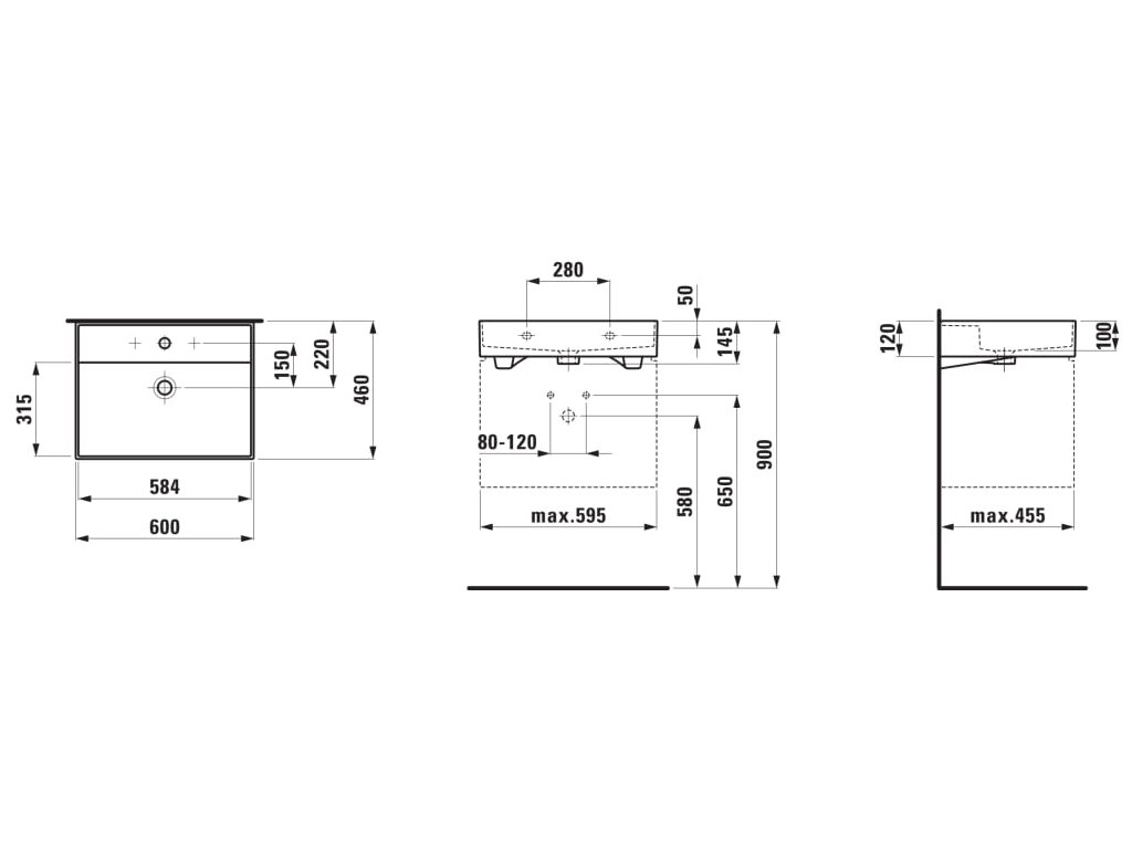 - Vnitřní šířka umyvadla (mm): 315