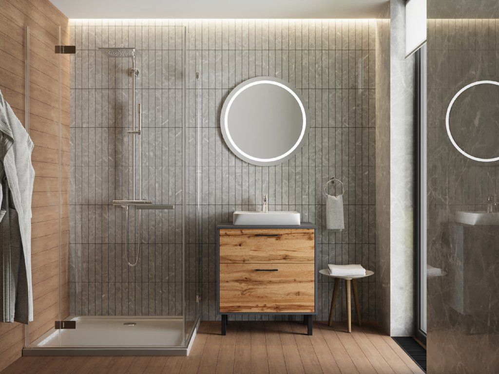 Lavedo Afina Neon Grey/Wotan Oak 80 koupelnová skříňka s umyvadlem, AF-80-NE-WO