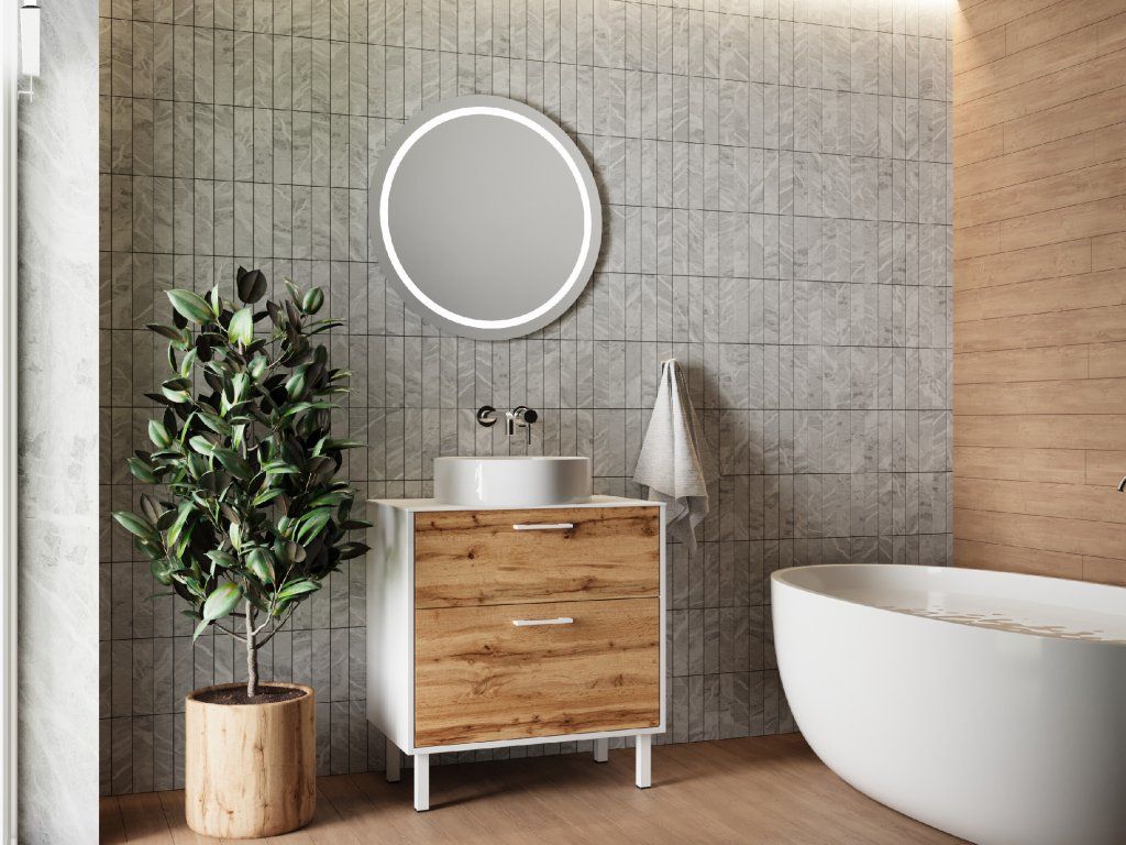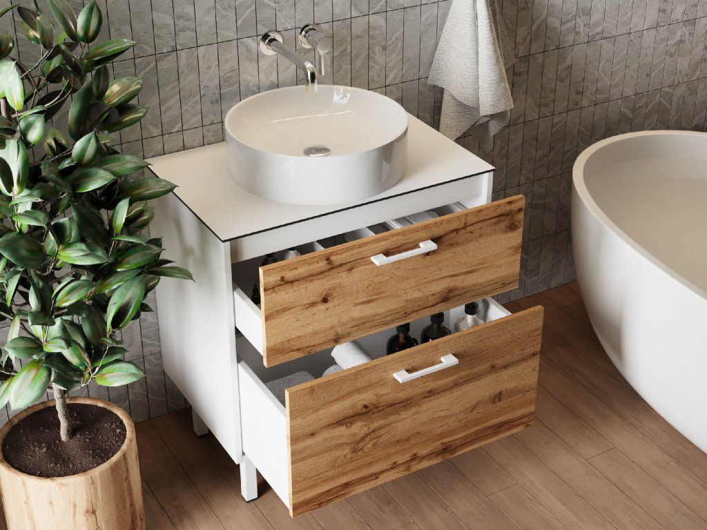 Lavedo Afina White/Wotan Oak 60 koupelnová skříňka s přípravou pro libovolné umyvadlo, AF-60-HPL-WO-GR2