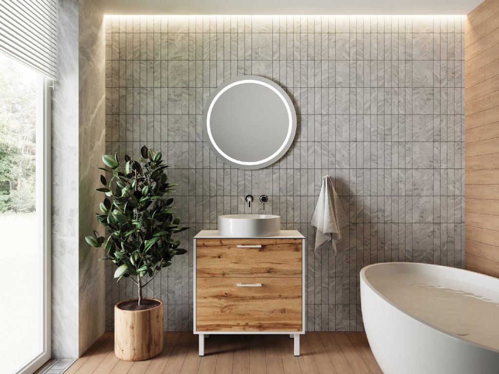 Lavedo Afina White/Wotan Oak 80 koupelnová skříňka s přípravou pro libovolné umyvadlo, AF-80-HPL-WO-WH