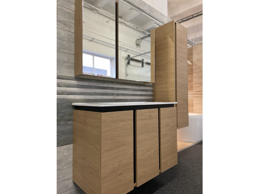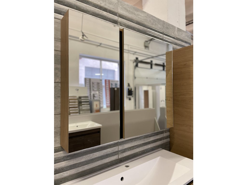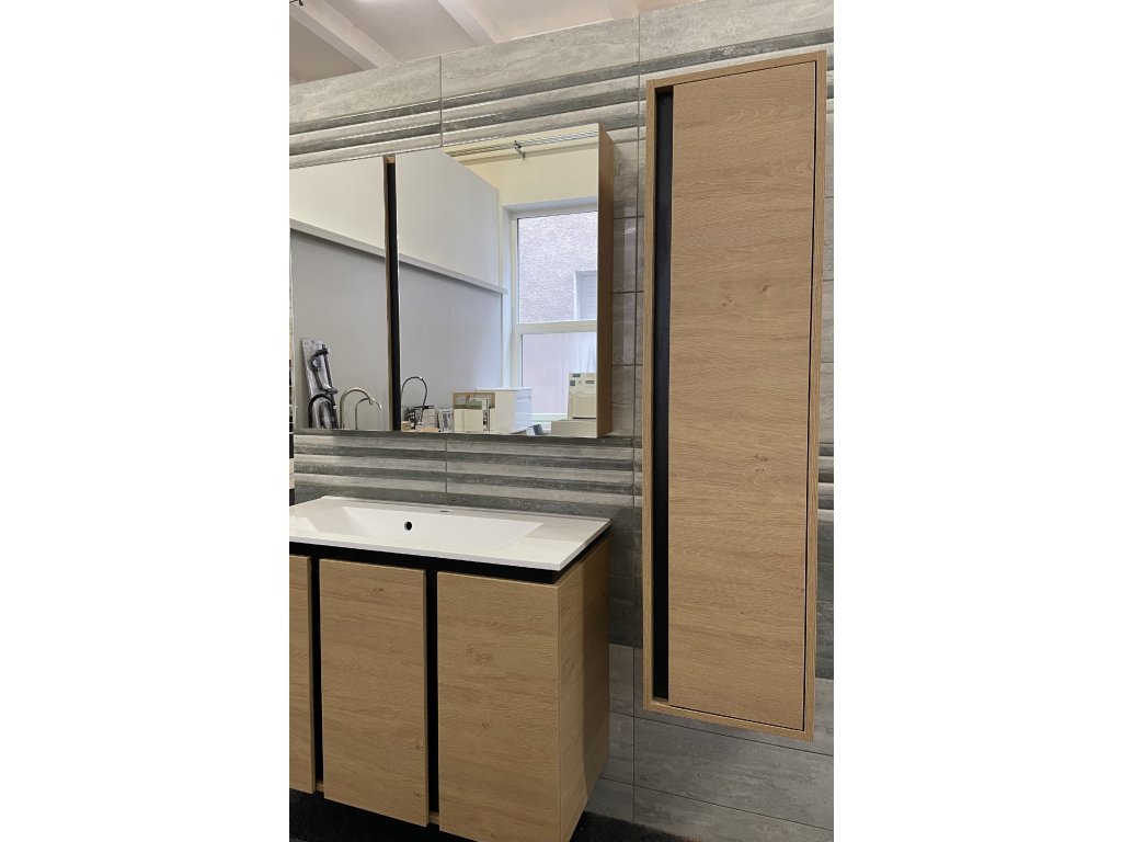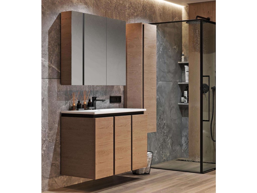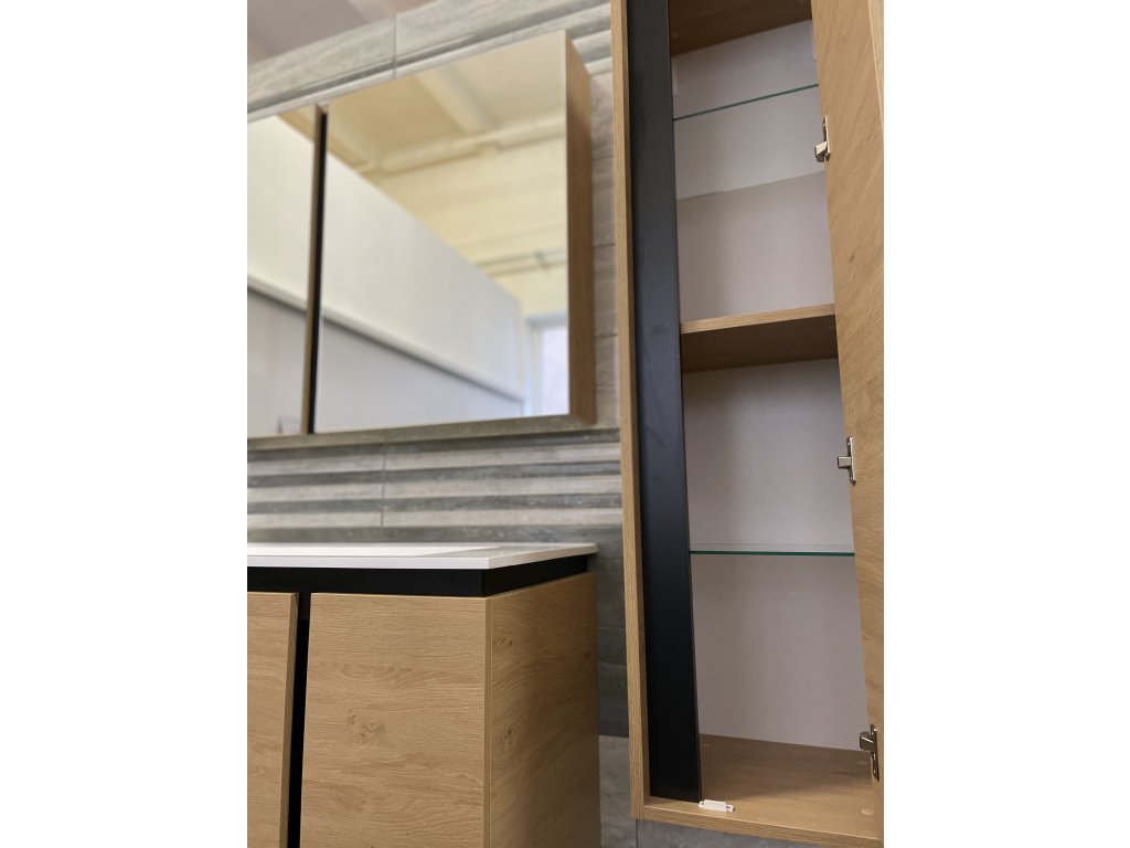 Představujeme Vám luxusní koupelnový nábytek, který zaujme především svým zajímavým provedením. Tato naprosto designová zrcadlová skříňka by rozhodně neměla chybět v žádné moderní stylové koupelně. Boční strany skříňky a celá konstrukce je vyrobena z MDF desky o tloušťce 16mm. Povrchová úprava je řešena dekorem dřeva. Velikou výhodou této skříňky je její soft close dovírání, díky kterému bude užívání skříňky naprosto pohodlné. Pociťte výhody a úložný prostor, který Vám tato skříňka dopřeje.