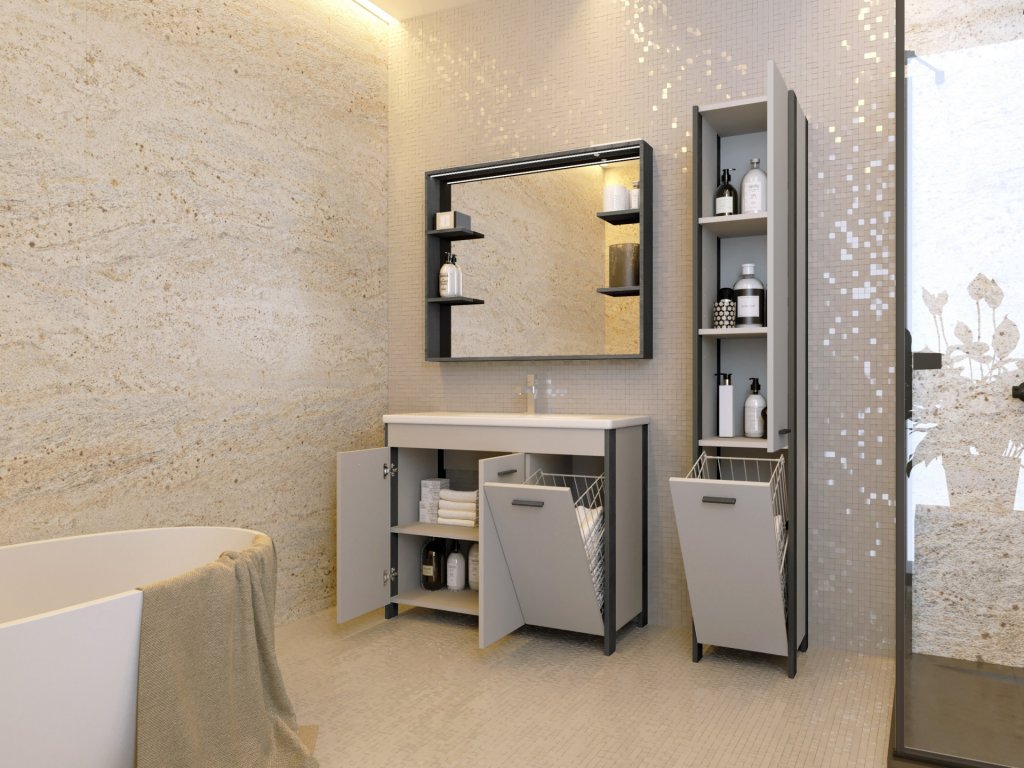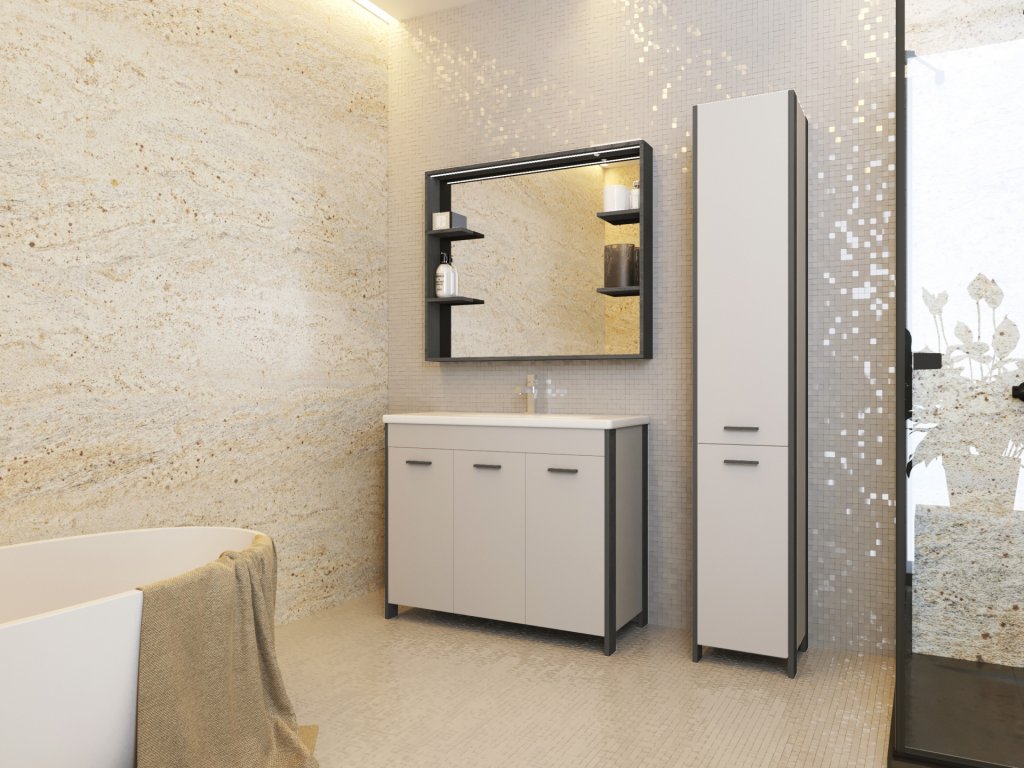 Designová a velmi praktická série koupelnového nábytku Broadway Black je nabízena v černém provedení rámu. Doplňkem každé koupelny je chytře zvolené zrcadlo, Broadway Black Vám splní to, co od koupelnového zrcadla očekáváte. Nabízí bohatý odkládací prostor v podobě poliček po obou stranách zrcadla. Zároveň nabízí LED osvětlení v provedení pásku v horní části rámu zrcadla.