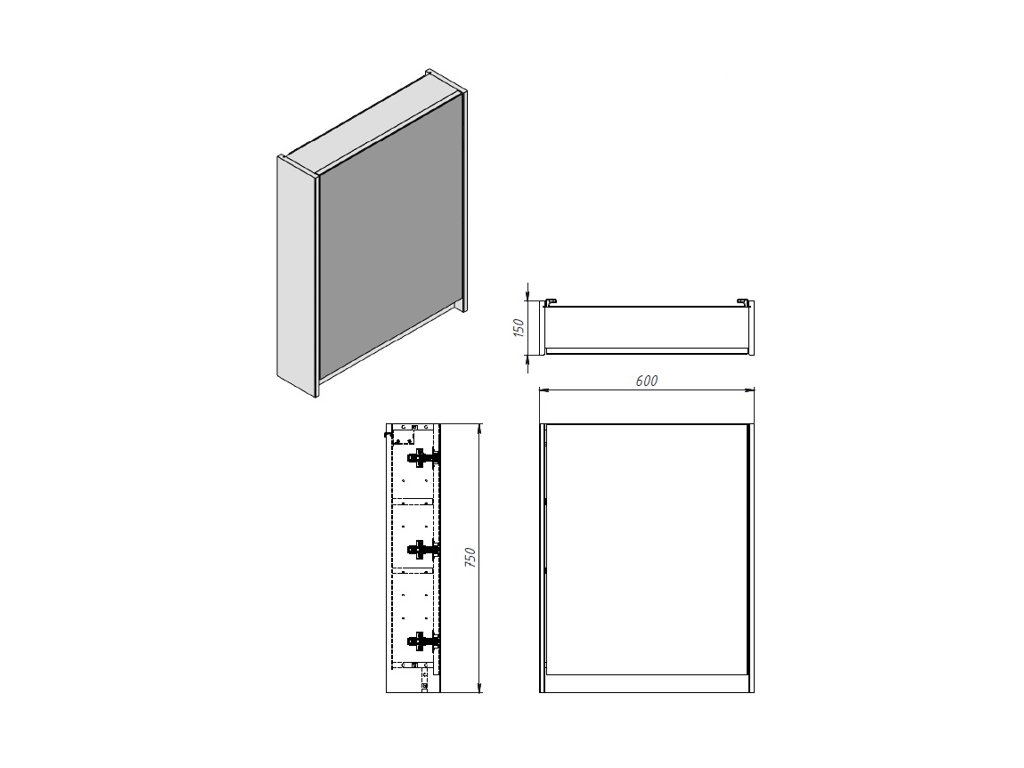 Kostra a přední části zrcadlové skříňky jsou vyrobeny z laminované dřevotřísky o tloušťce 16 mm. Zvenčí je povrch zrcadlové skříňky natřen lesklým bílým emailem. Výška zrcadlové skříňky je 75 cm, šířka 60 cm a hloubka 15 cm. Zrcadlová deska je k podstavci přilepena elastickým lepidlem, které nepoškozuje amalgám a zajišťuje bezpečné uchycení. Zrcadlová tkanina je nalepena na vnější straně dvířek. Zrcadlová skříňka má jednu přihrádku s jedněmi dvířky, prostor za nimiž je rozdělen dvěma policemi z dřevotřísky o tloušťce 16 mm. Police lze výškově nastavit. Dveře jsou zavěšeny na závěsech se systémem soft-close, které zajišťují hladké a měkké zavírání. Zrcadlová skříňka je bez LED osvětlení v případě potřeby lze samostatně zakoupit chromovanou LED lampu z naší nabídky a nainstalovat ji na horní část zrcadlové skříňky. Zrcadlová skříňka má regulované úchytky pro zavěšení.