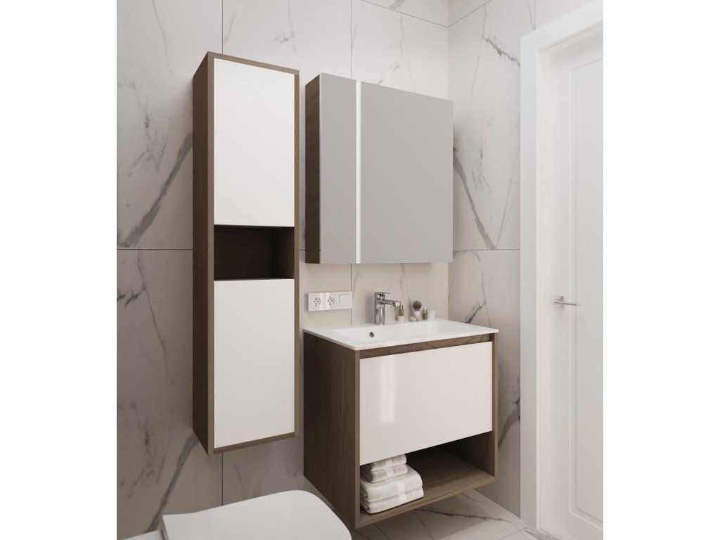 Představujeme Vám luxusní koupelnový nábytek, který zaujme především svým zajímavým provedením. Tato naprosto designová skříňka s umyvadlem by rozhodně neměla chybět v žádné moderní stylové koupelně. Boční strany skříňky a celá konstrukce jsou vyrobeny z MDF desky o tloušťce 16mm. Umyvadlo, které je součástí skříňky, je vyrobeno z vysoce kvalitní keramiky. Povrchová úprava je řešena bílou barvou a dekorem dřeva. Velikou výhodou této skříňky je její soft close dovírání, díky kterému bude užívání skříňky naprosto pohodlné. Pociťte výhody a úložný prostor, který Vám tato skříňka dopřeje.