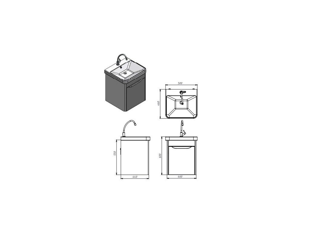 - rozměry včetně umyvadla - 50 x 60 x 46 cm (šířka, výška, hloubka)