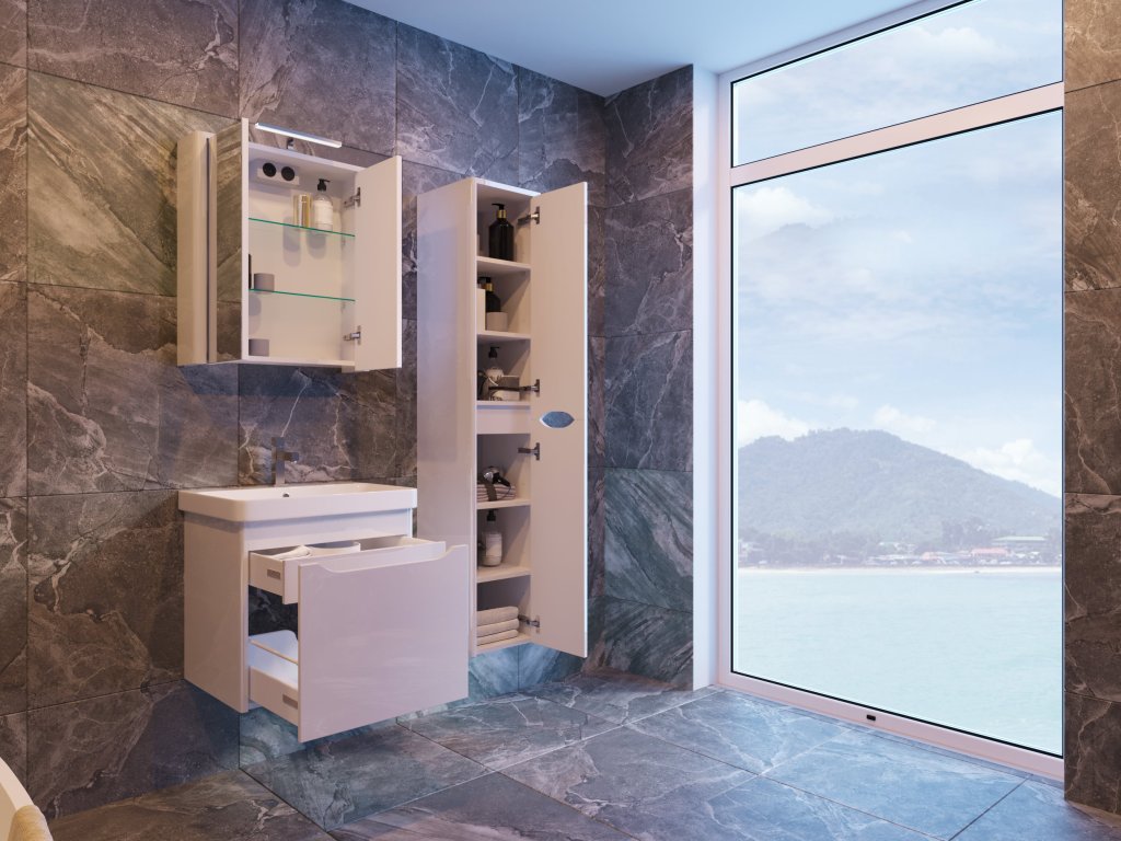 Lavedo Livorno White Structure 60 zrcadlová skříňka do koupelny s LED osvětlením, LVRMC-60STRUCTUREWHITE