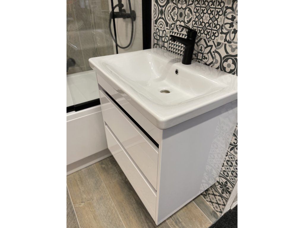 Představujeme Vám zcela nový luxusní koupelnový nábytek, který nadchne úplně každého. Tato naprosto designová skříňka s umyvadlem by rozhodně neměla chybět v žádné moderní koupelně. Skříňka je vyrobena z dřevotřísky o síle 16 mm. Umyvadlo, které je součástí skříňky, je vyrobeno z velice kvalitní sanitární keramiky. Povrchová úprava je řešena bílou lesklou barvou. Velkou výhodou této skříňky je její soft close dovírání, díky kterému bude užívání skříňky naprosto pohodlné. Pociťte výhody a úložný prostor, který Vám tato skříňka dopřeje.