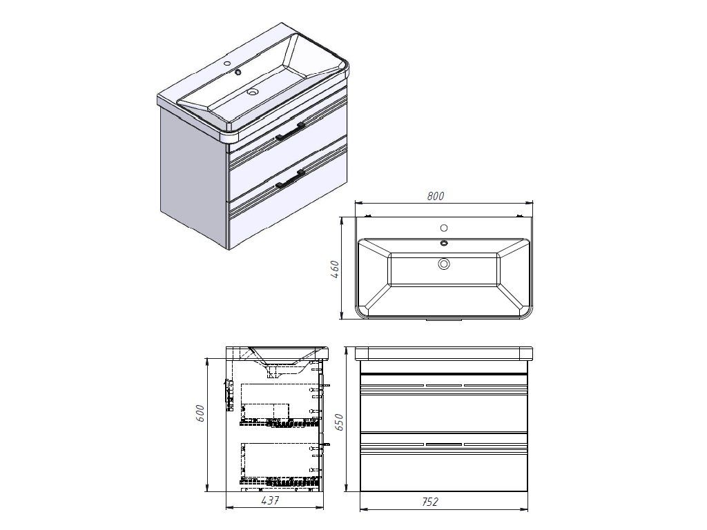 - rozměry skříňky včetně umyvadla - 80 x 46 x 65 cm (šířka, hloubka, výška)