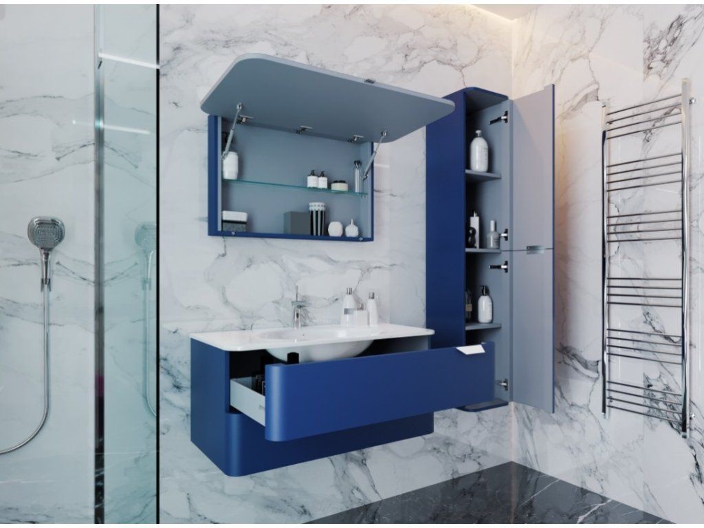 Představujeme Vám luxusní koupelnový nábytek, který nadchne úplně každého. Tato naprosto designová koupelnová galerka by neměla chybět v žádné moderní koupelně. Galerka je vyrobena z MDF desky. Povrchová úprava je řešena barvou potaženou jemným dekorativním nátěrem. Úchyty galerky jsou hliníkové potažené černou barvou. Galerka je vybavena skrytým LED osvětlením (LED pásek).