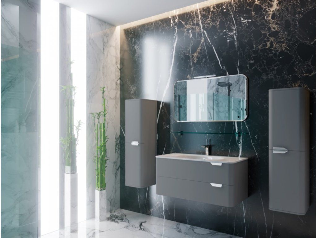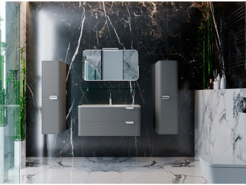 Představujeme Vám zcela nový luxusní koupelnový nábytek, který nadchne úplně každého. Tato naprosto designová skříňka s umyvadlem by rozhodně neměla chybět v žádné moderní koupelně. Skříňka je vyrobena z MDF desky 16mm. Umyvadlo, které je součástí skříňky, je vyrobeno z velice oblíbeného litého mramoru. Povrchová úprava je řešena šedou barvou v matu. Skříňka je určena na zavěšení na zeď, což je zárukou bezproblémového úklidu. Velkou výhodou této skříňky je její soft close dovírání, díky kterému bude užívání skříňky naprosto pohodlné. Pociťte výhody a úložný prostor, který Vám tato skříňka dopřeje.