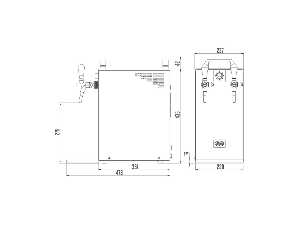 • VÝBAVA – Standardní dodávanou součástí je termostat umožňující plynulou a přesnou regulaci teploty nápoje, výčepní kohout(y), klíč na kohouty, odkapní miska a rychlospojky pro snadné připojení.
