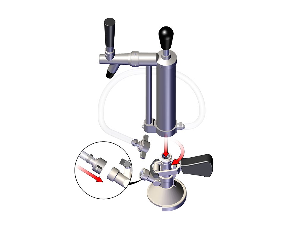 - párty pípa s ruční pumpou k čepování piva z KEG sudu připojení k naražeči přes závit 5/8