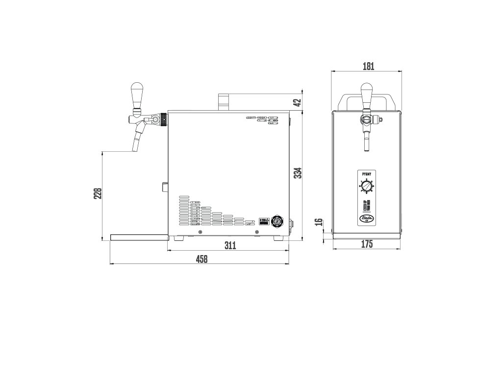 Chladicí výčepní zařízení PYGMY 20/K NEW GREEN LINE je naším nejmenším výčepním zařízením. Obsahuje vestavěný kompresor a oceníte ho při menších zahradních party, setkání s přáteli nebo jednoduše kdykoli, když budete mít chuť na kvalitně čepované pivo. Označení NEW v názvu znamená, že se jedná o inovovanou verzi chladiče, která je certifikovaná podle nejnovějších bezpečnostních a hygienických norem (českých i evropských).