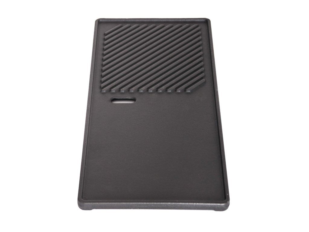Litina patří mezi nejodolnější materiály, které se pro grilování používají. Je vysoce odolná proti vysokým teplotám a poškrábání. Na každé polovině litinového plátu máte k dispozici jiný druh povrchu. Jedna polovina je hladká a využijete ji především pro grilování nakrájené zeleniny, vajíček a sýrů. Druhá polovina s vroubky je určená pro správné grilování steaků, větších kusů zeleniny a ryb.