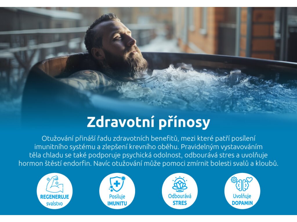 Rozměry 1ks zabaleného zboží: výška - 11,00 cm; šířka - 37,00 cm; délka - 75,00 cm, hmotnost - 4,00 kg.Kruhová ochlazovací káď doplňuje řadu produktů wellness. Ochlazování odbourává stres, posiluje imunitu, regeneruje svalstvo a uvolňuje dopamin.