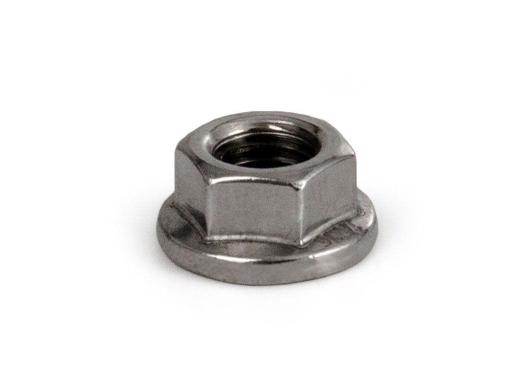 Přírubová matice G21, M10, DIN 6923, materiál nerez. Můžete koupit v krabičce po 100 kusech.