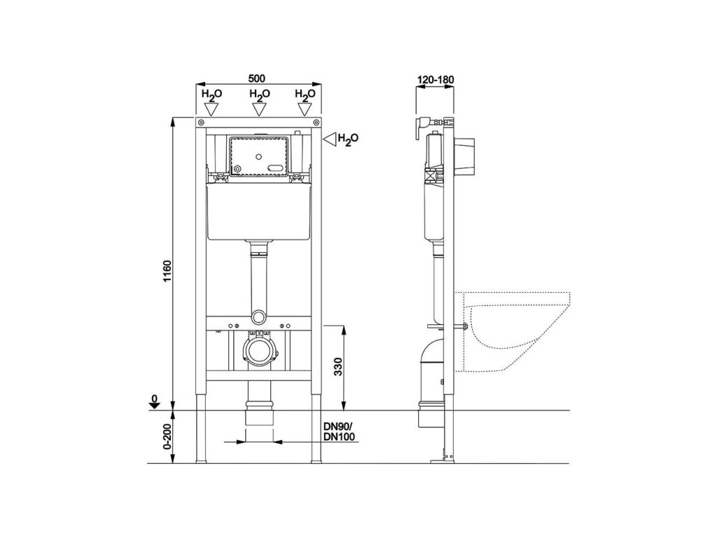 • Pro montáž závěsného WC s roztečí 18cm nebo 23cm